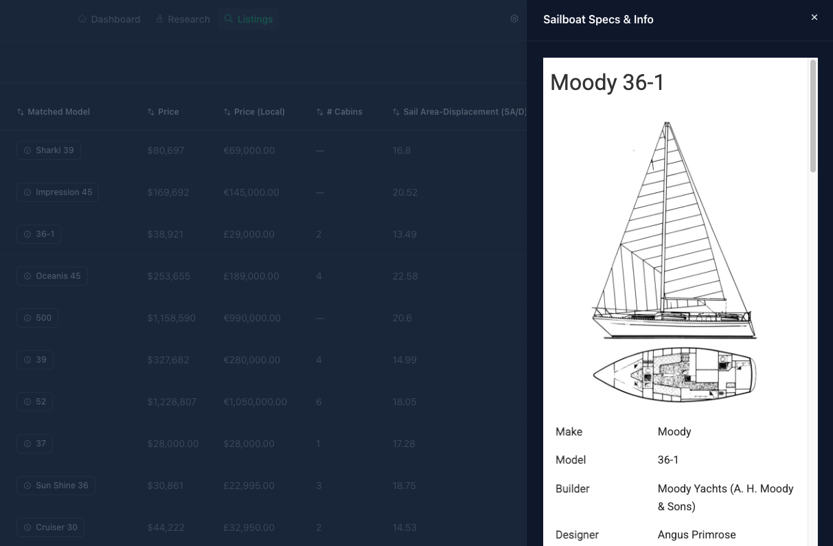 From any Collection — or any single model — jump straight into the global market. Listings Port pulls current listings from YachtWorld, Boat24, Apollo Duck, Yachtr, and other major marketplaces.